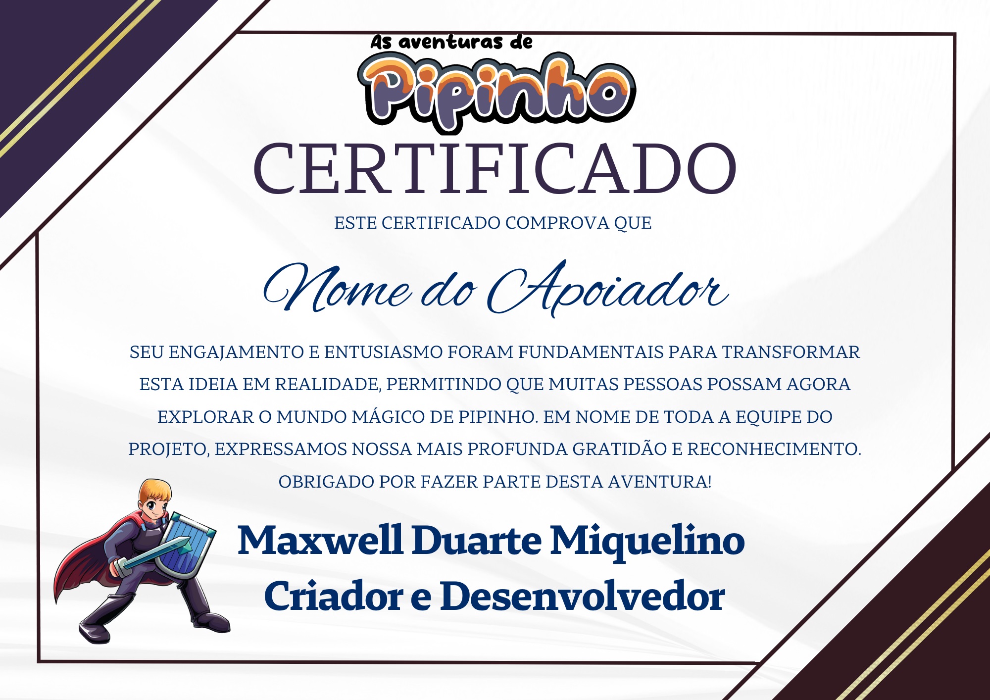 Todos os Apoiadores receberá um Certificado de Agradecimento